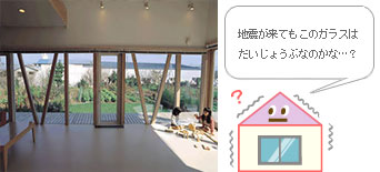 地震の時、ガラスができる限り割れないように、万一割れても飛散・脱落することがないように、設計されてなければいけません。