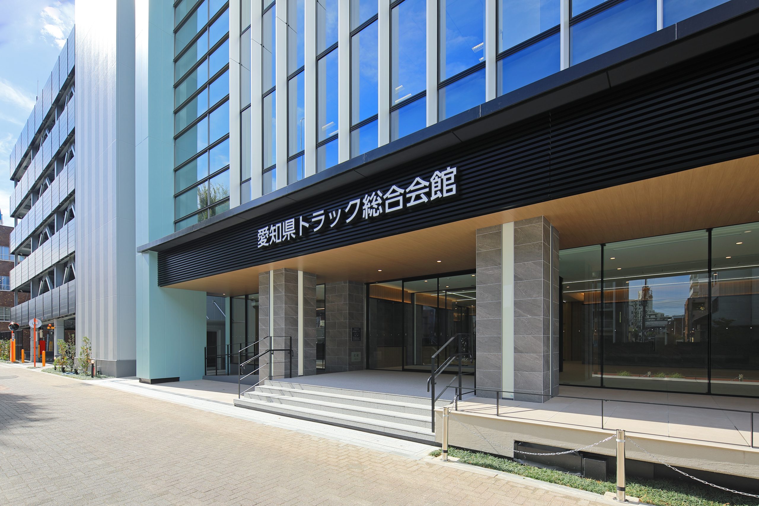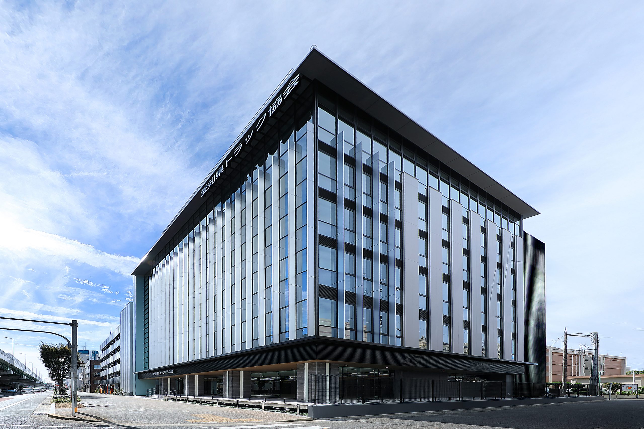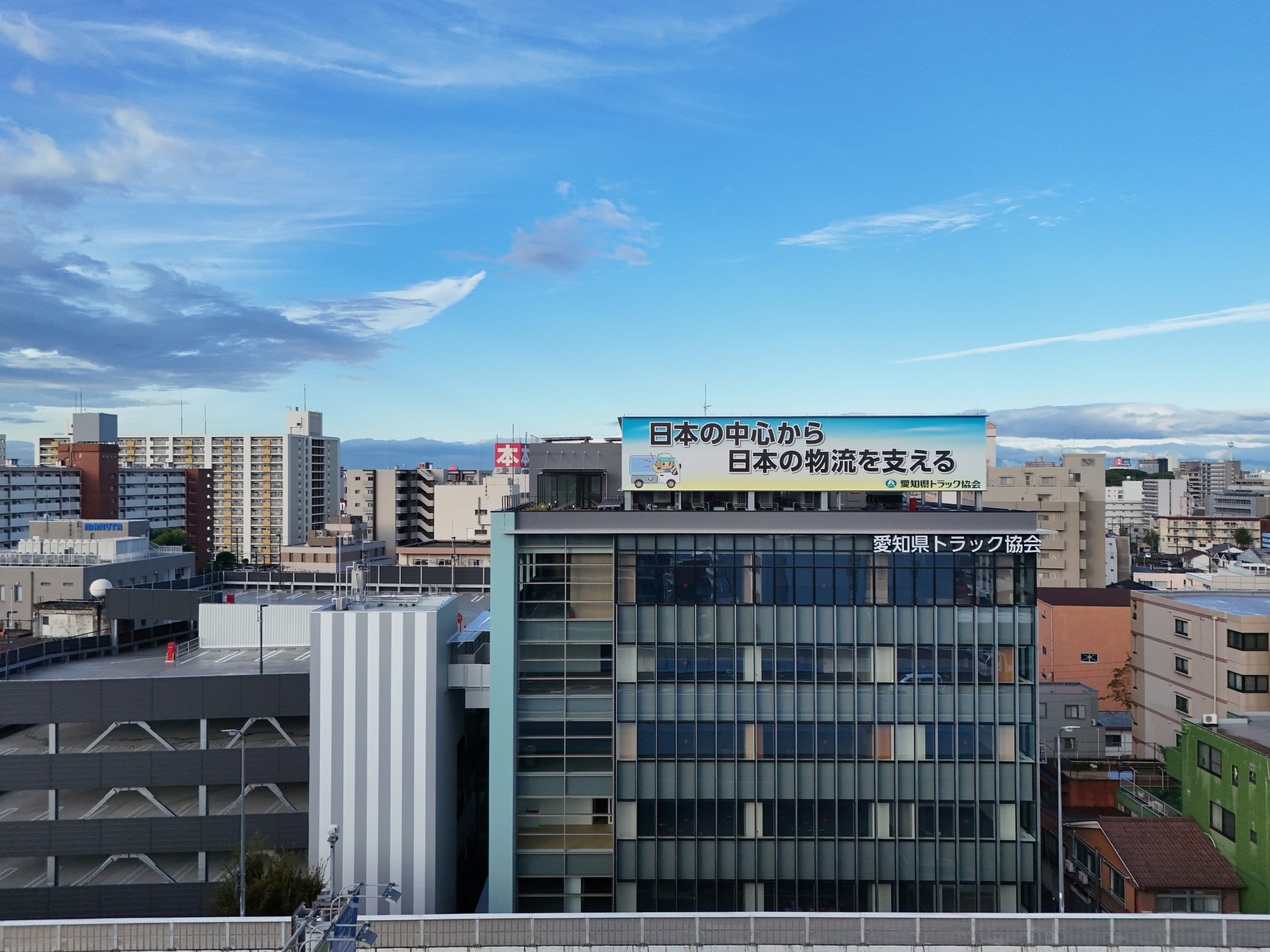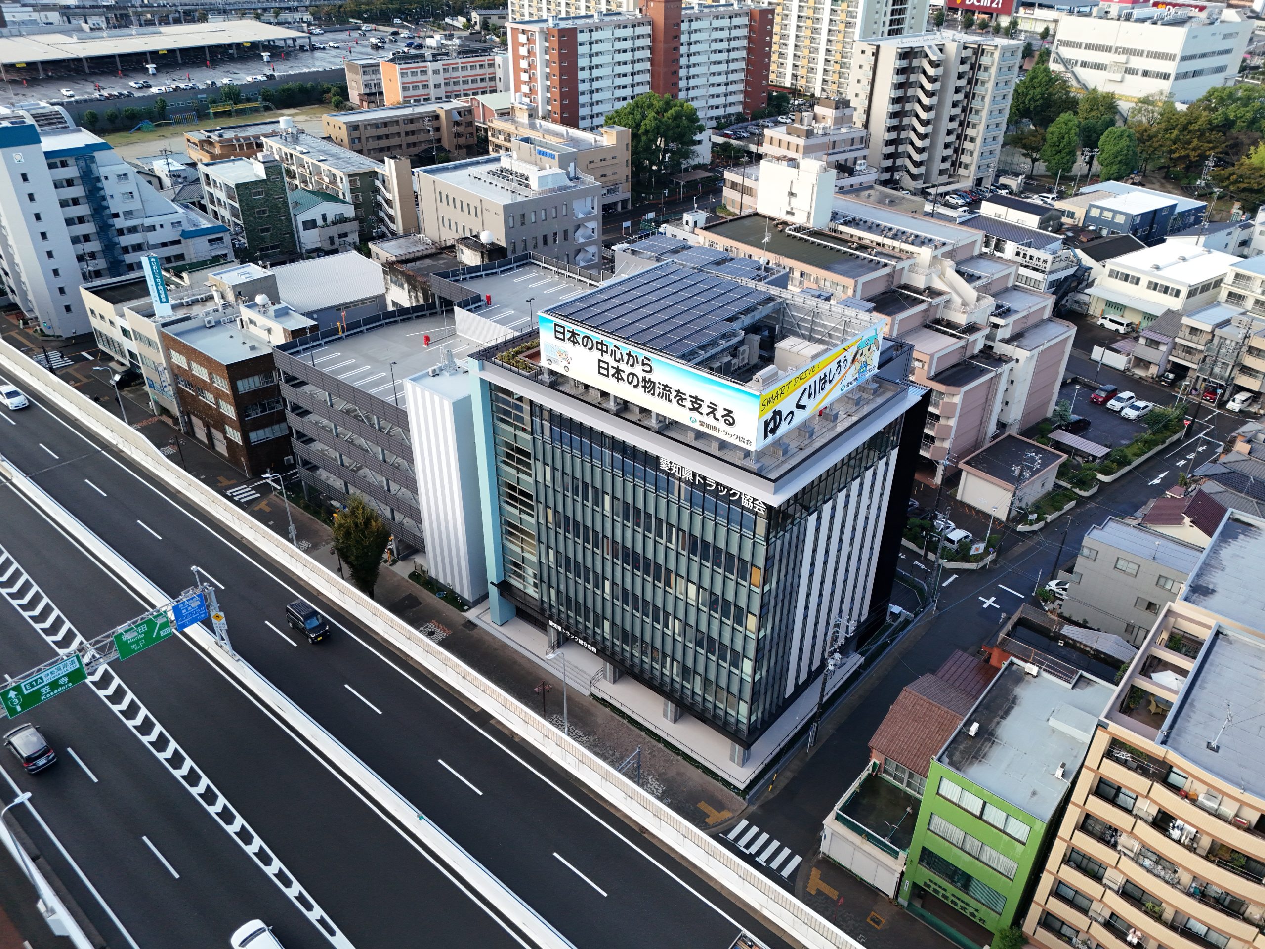 一般社団法人愛知県トラック協会は、トラック業界の発展を目的に交通事故防止・安全運行の確保のほか、環境対策にも取り組んでいます。今般、施設の老朽化に伴い、高い省エネ性を目指し建設された新トラック会館は、「災害対策拠点」として地震等の災害発生時は行政機関と連携し、災害対策拠点としても活躍しています。