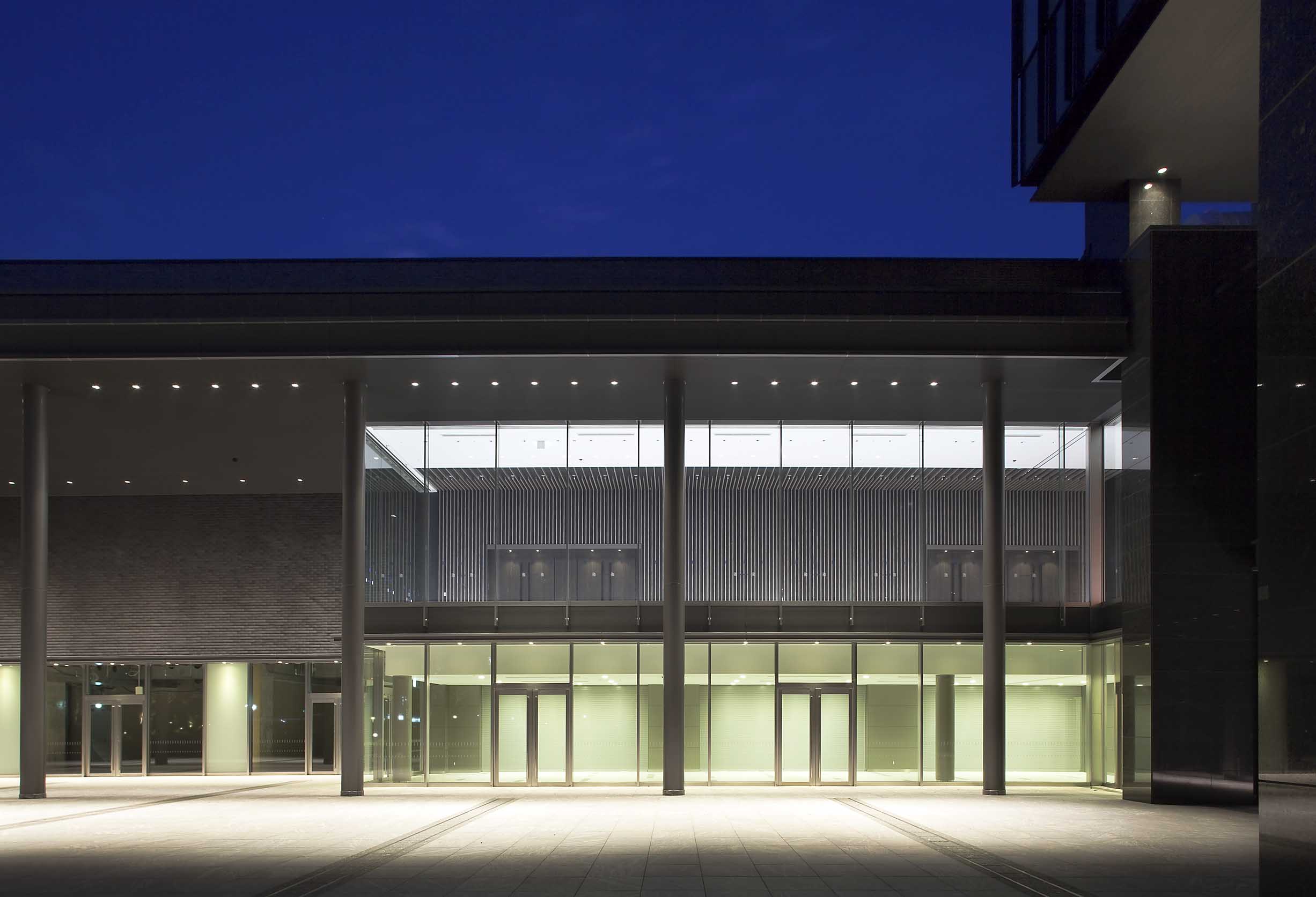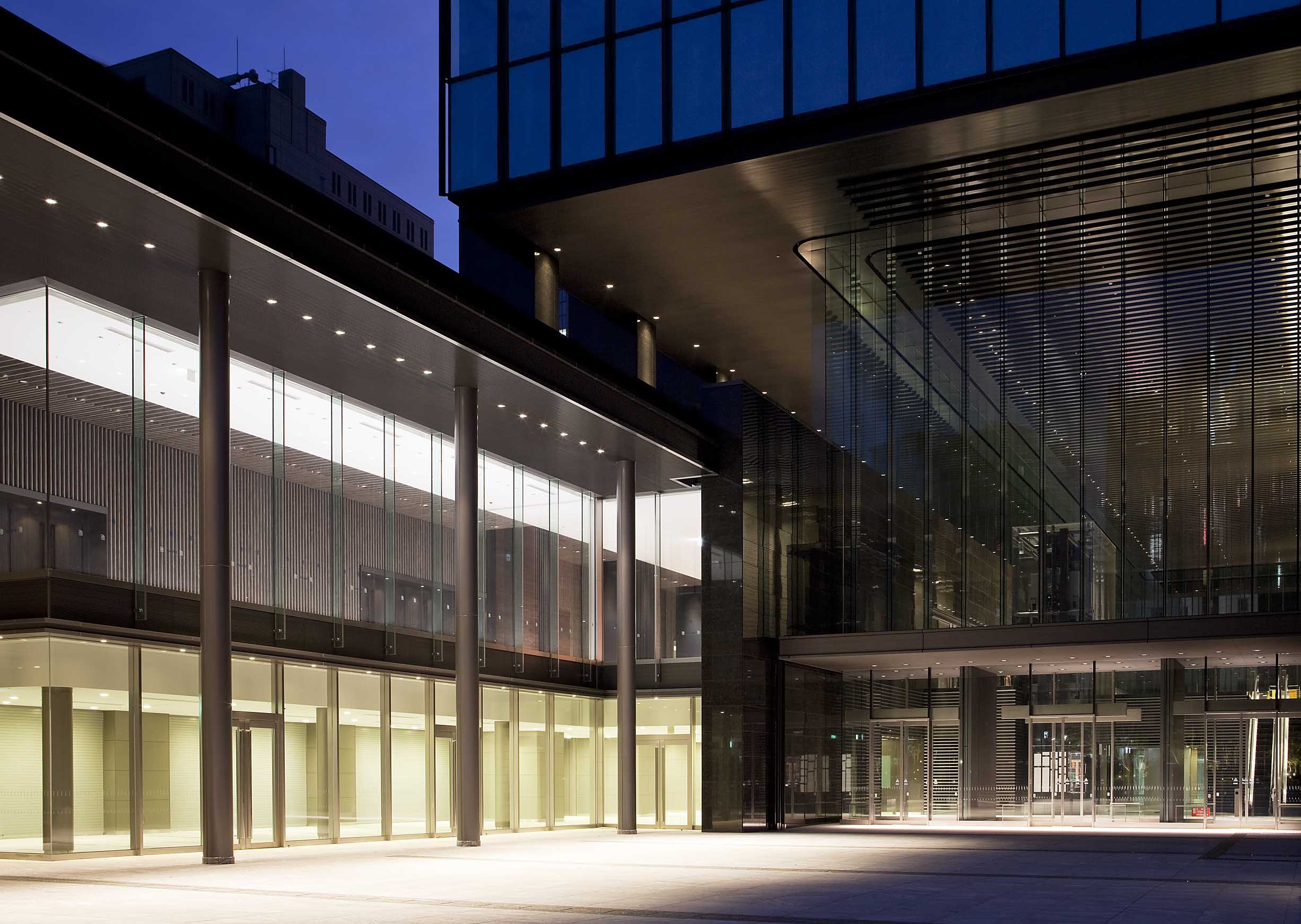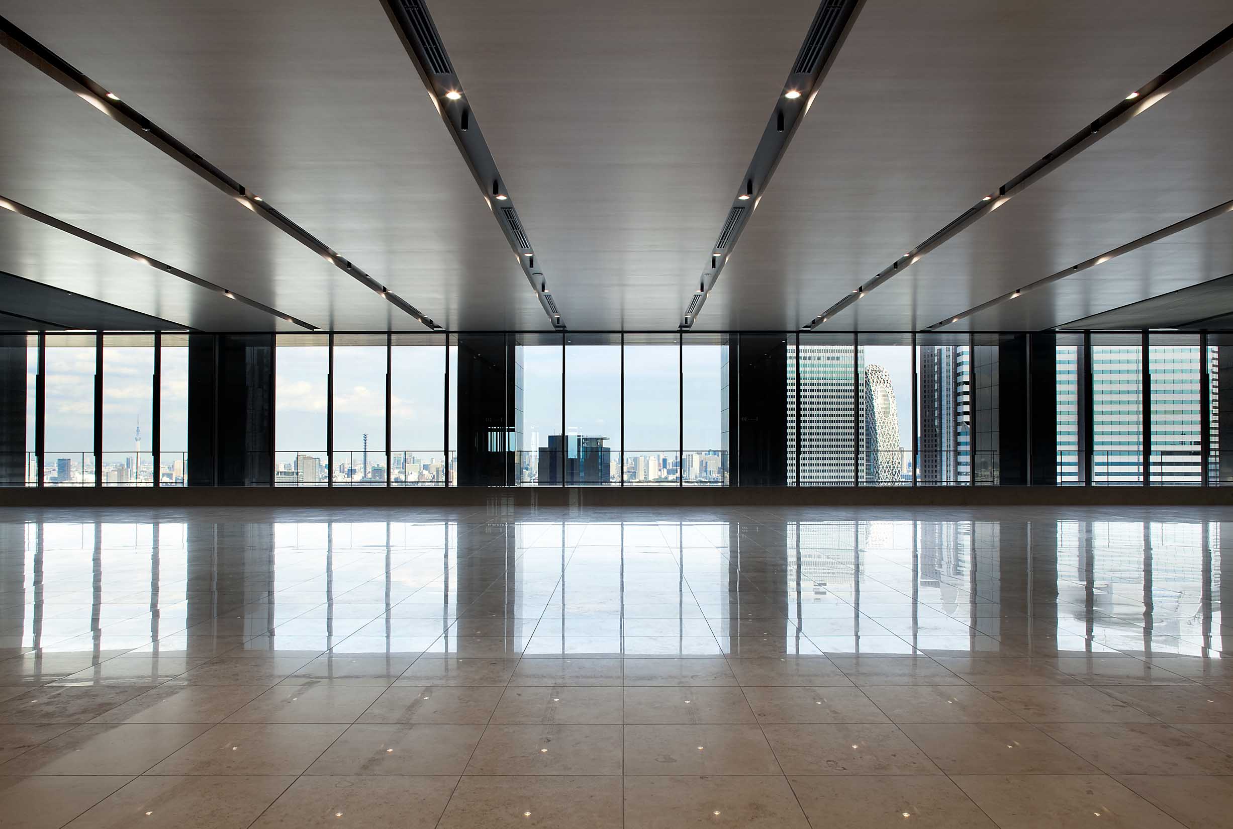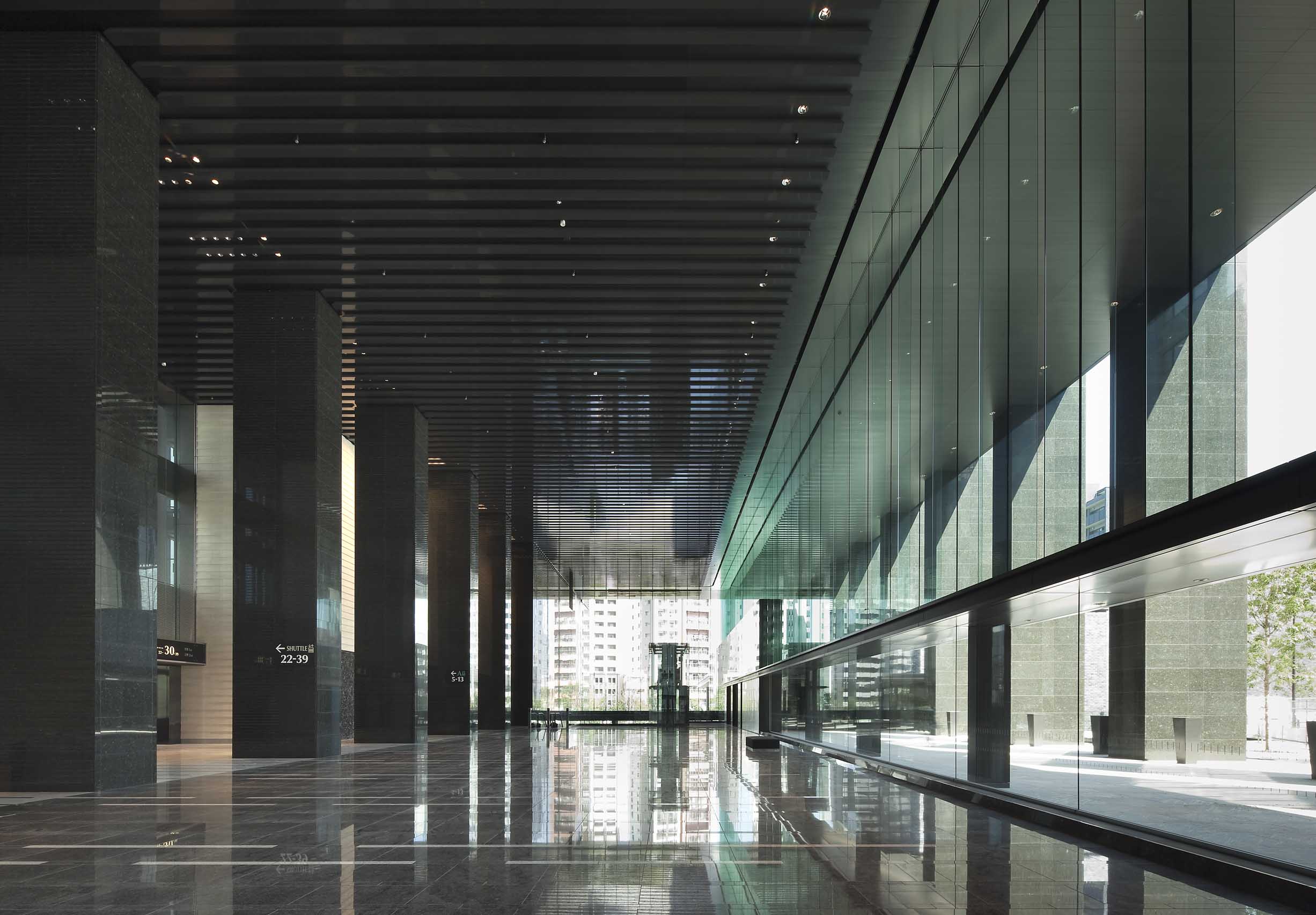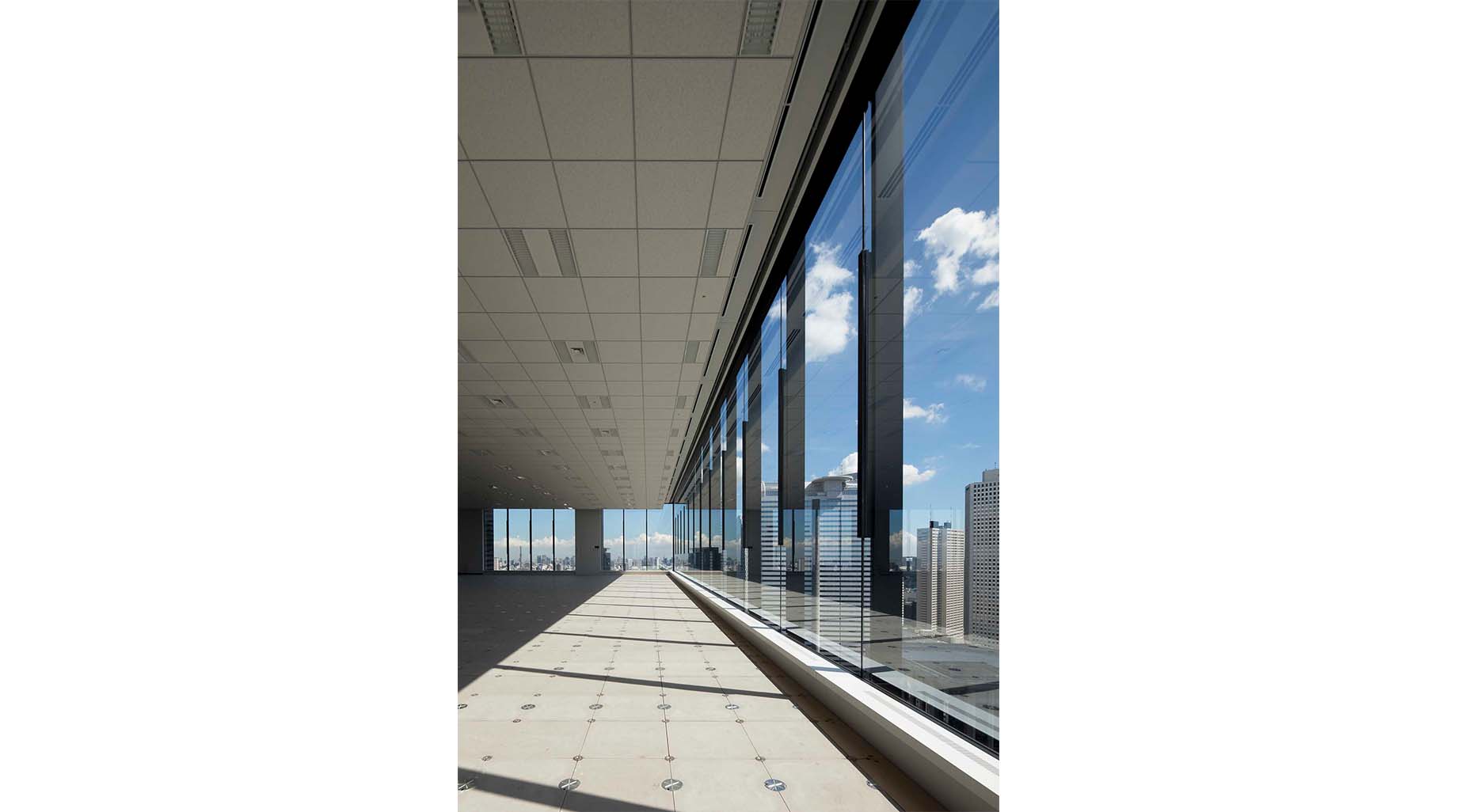 さらに、建物には制振鋼板壁やAMD(アクティブマスダンパー)を採用し、揺れを軽減する構造を持つため、外観だけでなく安全性・快適性にも配慮されています。大型の共用部ガラス面がビルの透明感と高さの印象を強め、夜間のライトアップでは都市のランドマークとして際立ちます。都市型ハイグレード複合ビルとして、多用途に対応する外装設計がなされています。