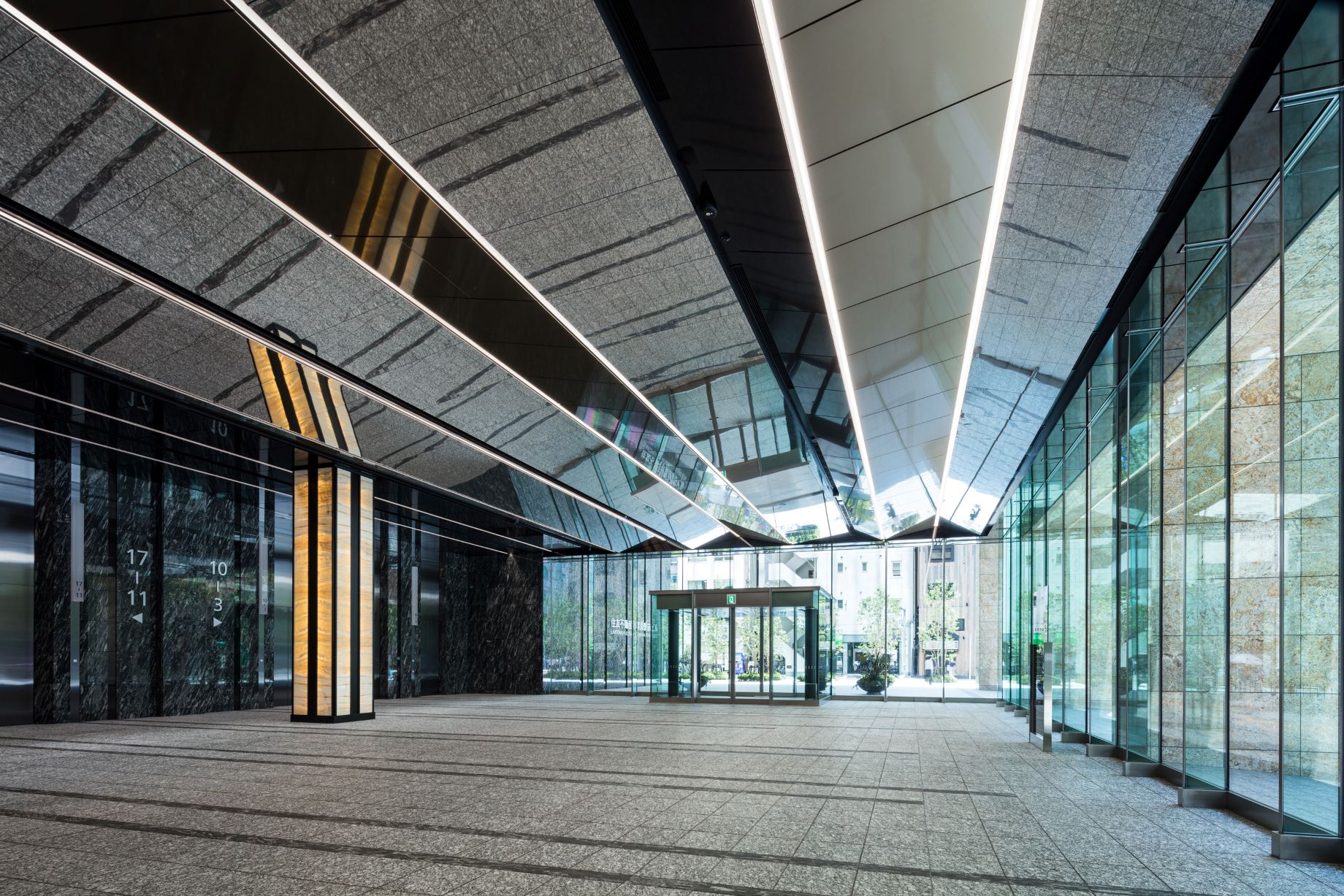 外観はモダンなガラスカーテンウォールを基調に、スリムでシャープな立面デザインが特徴で、都心の再開発エリアに調和した洗練された都市景観を形成しています。ガラスファサードは大開口と透明感を活かし、周囲環境からの視認性と採光性に優れたファサードとなっています。