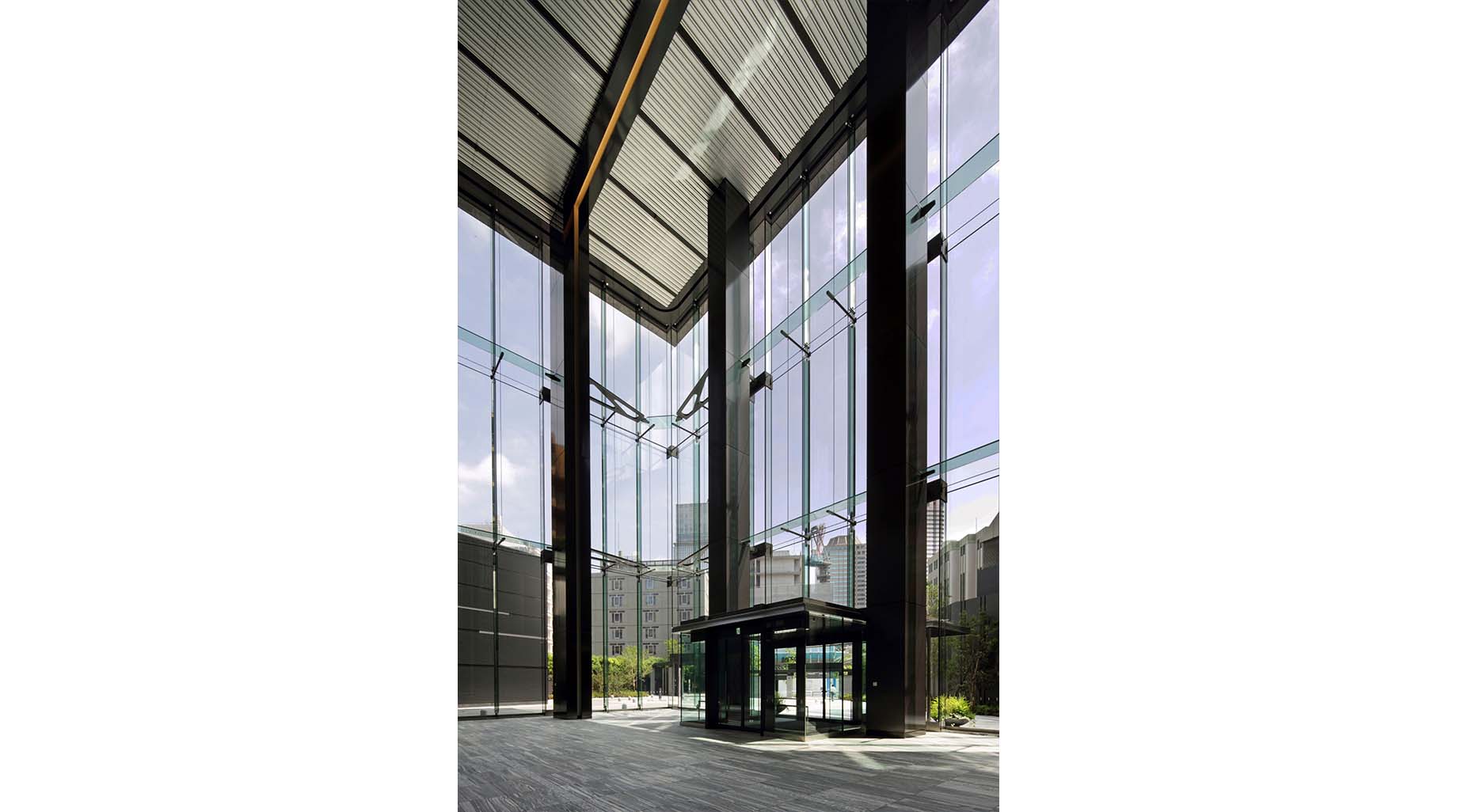 タワーのビジョン部にはLow-E複層ガラス「ペアマルチLow-E(ブルー60)」が、スパンドレル部には高性能熱線反射ガラス「レフシャイン(TBL35)」が採用されています。