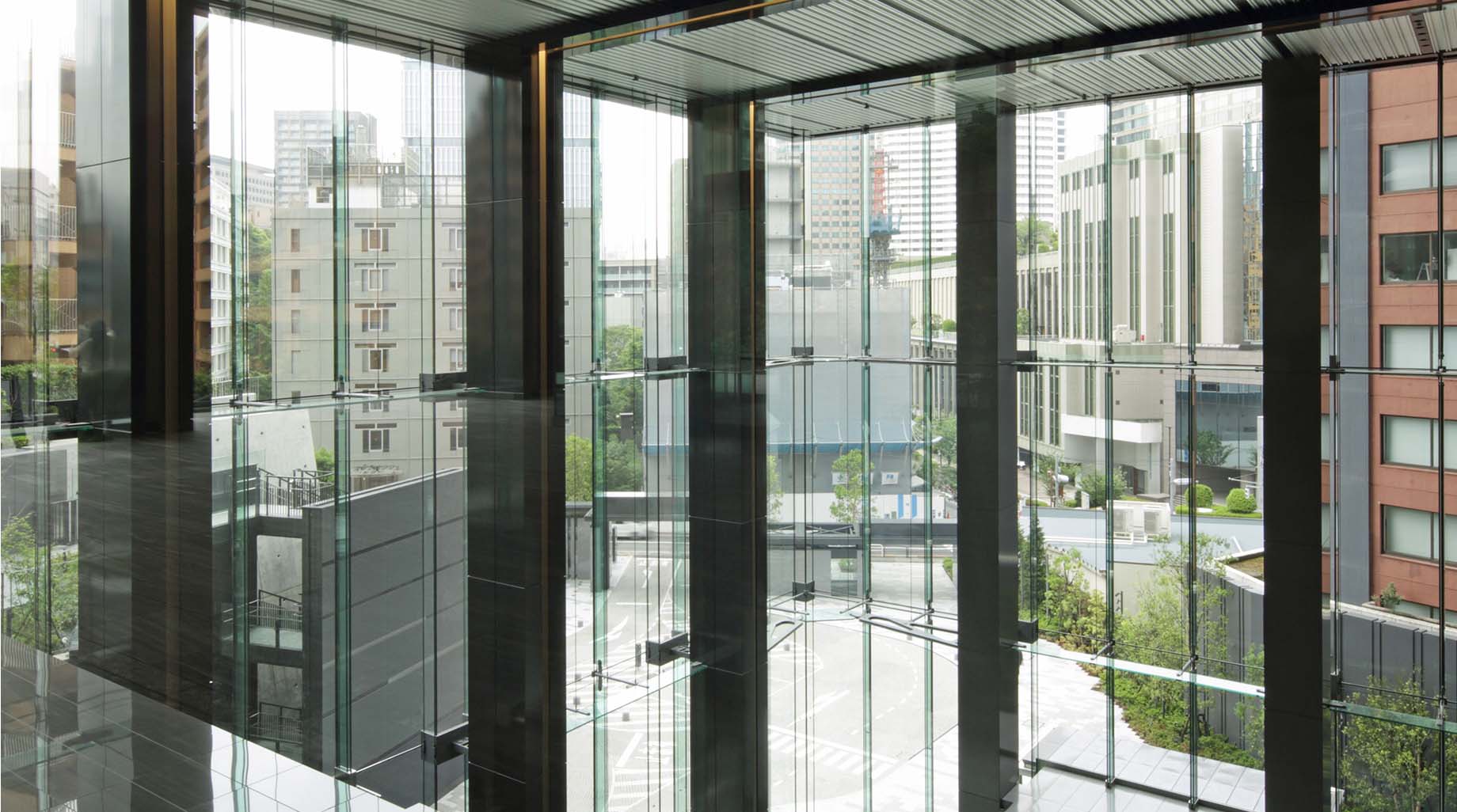 外観デザインは都市景観との調和を重視し、ガラスカーテンウォールを基調とした清潔感あるファサードが特徴です。立面は縦横のラインが明快に構成され、モダンで研ぎ澄まされた外観デザインが麹町・永田町エリアの洗練された都市イメージを強調します。ガラス面は透明感と反射性のバランスを最適化した仕様となっており、自然光を取り込みつつ視認性の高い立体感を演出しています。