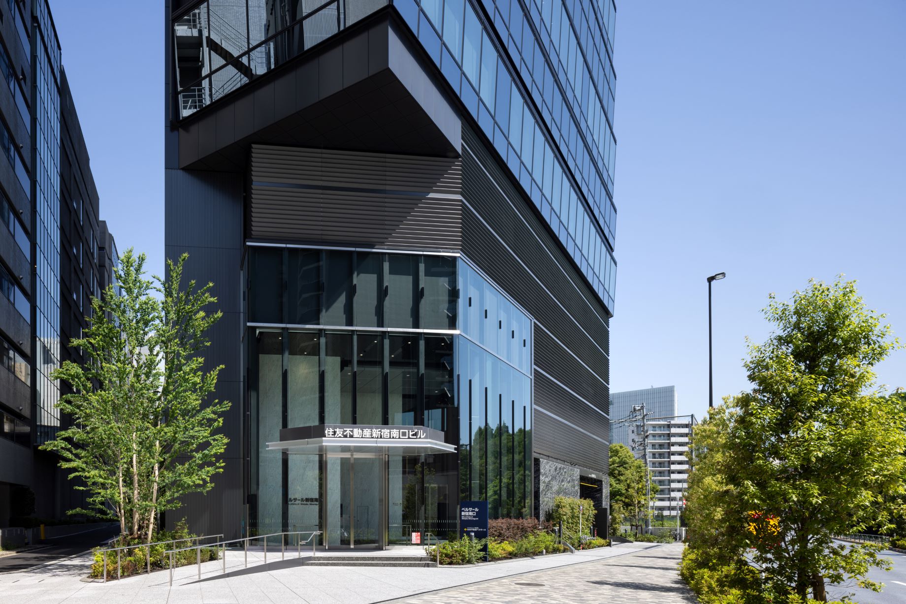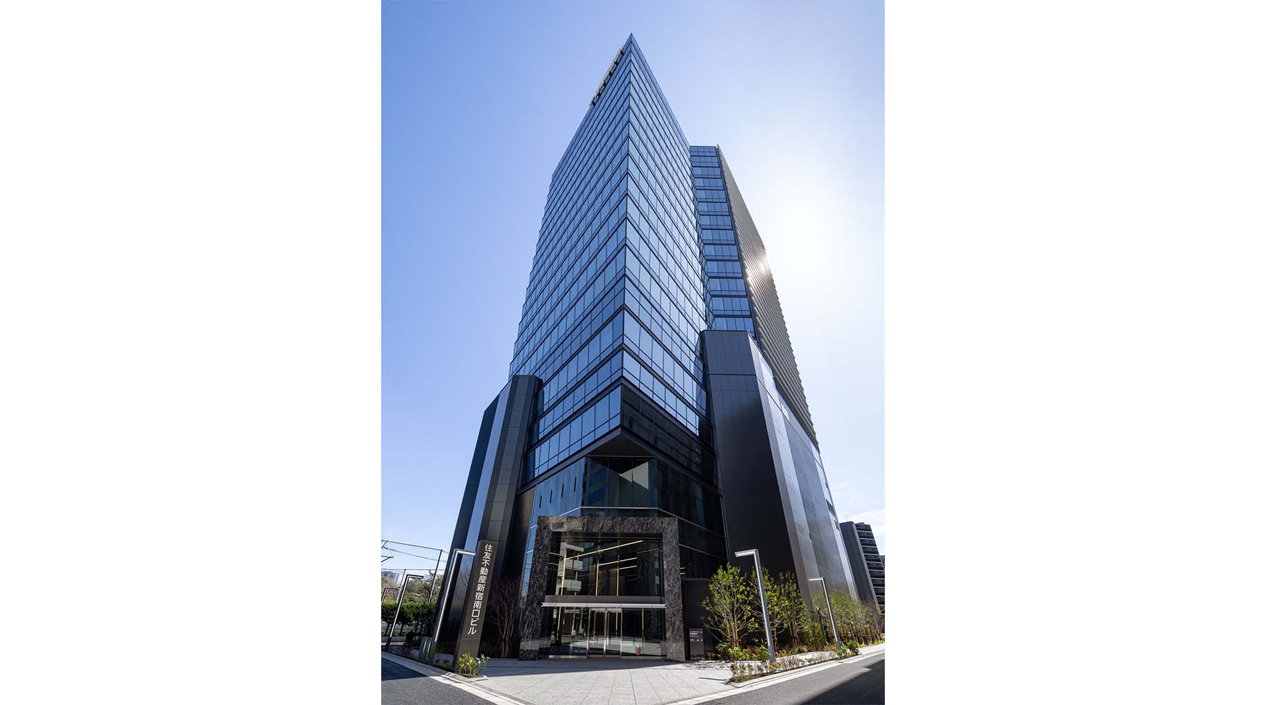 2024年3月に竣工し、新宿駅南口エリアの新たなランドマークとして誕生しました。外観はガラスカーテンウォールを基調としたモダンで洗練されたファサードデザインが特徴で、透明感のある大開口ガラス面が採光性と視認性を高めています。