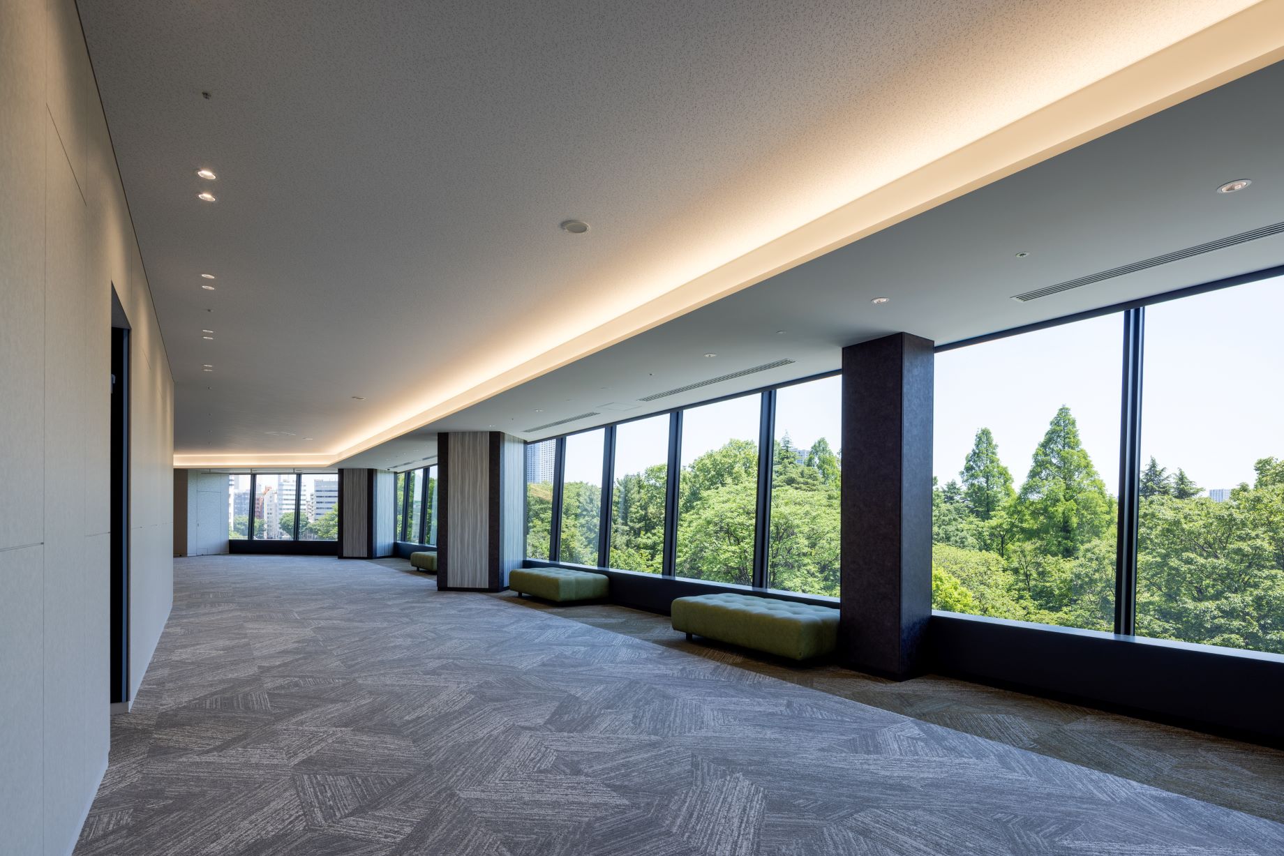 立面全体に均整の取れた水平・垂直のラインを配し、周囲の都市景観と調和するとともに、新宿南口の玄関口として高い存在感を放つ外観設計です。低層部のファサードは歩行者スケールに配慮した素材と構成を採用し、エントランス周りの開放感と視認性を強化。また、最新の建築技術により省エネルギー性と快適性も両立しています。
