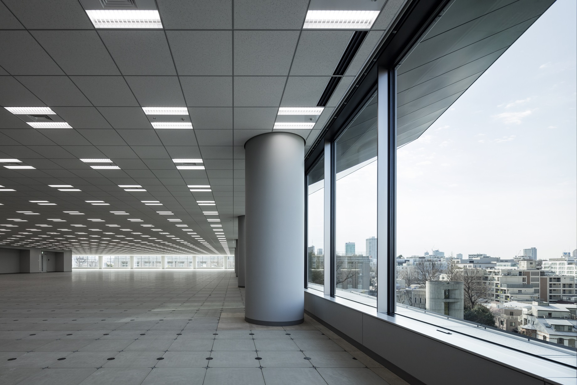 ビルのビジョン部にはLow-E複層ガラス「ペアマルチLow-E(シルバー54)」が採用されています。