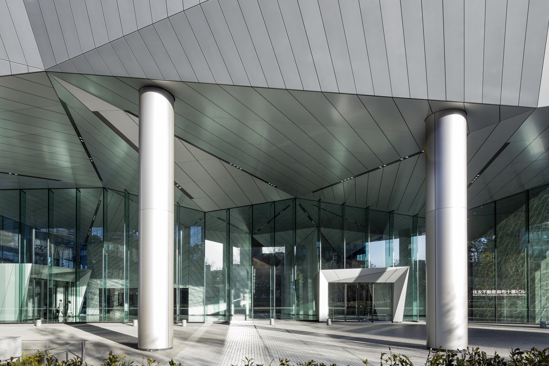 住友不動産麻布十番ビルは、東京都港区三田一丁目に位置する地上10階・地下1階建ての都市型オフィスビルで、洗練された外観デザインが街の景観に調和しています。