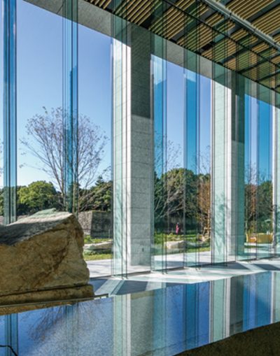ガラススクリーン、大板ガラススクリーンなど、ガラスの透明性を最大限に活かした特殊構法です。