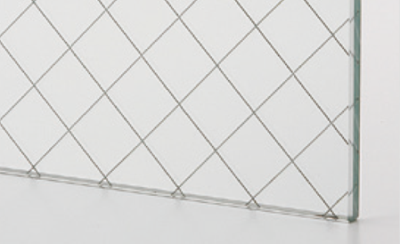 火災時にガラスが破損しても網がガラスの破片の落下を防ぐので、割れたガラスに隙間がでないため火炎の侵入を防ぐ防火ガラスです。法規上、定められた箇所には防火ガラス使用が義務付けられています。