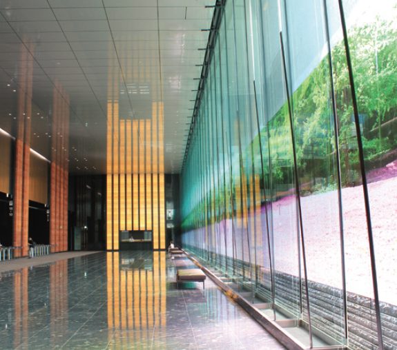 ガラススティフナースクリーンはスティフナーガラスを用い、開口部をすべてガラスだけで構成したガラススクリーンです。