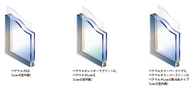 ペアマルチEA、ペアマルチレイボーグ、ペアマルチスーパー等の各種Low-Eガラス製品へ対応が可能です。
