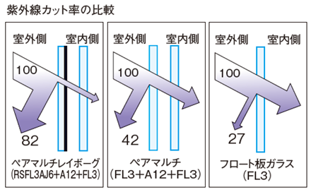 太陽の光に含まれる紫外線は、家具・カーテン・壁の色褪の原因になります。ペアマルチレイボーグは、Low-E膜の効果で、その紫外線の約82%をカットします。