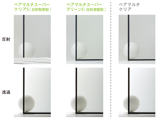 反射色は自然な色合いのクリアSとグリーンSの2タイプ。周囲の環境や外壁との相性に合わせて選択できます。