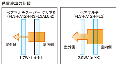 ペアマルチスーパーは、暖かい太陽の日射しを室内に十分取り入れ、室内の熱を外に逃さず、断熱性能を高めたLow-E複層ガラスです。