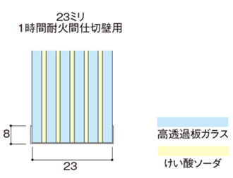高透過板ガラスとけい酸ソーダ(水ガラス)層とを交互に積層した構造のパイロストップは、万一の火災時に火炎や煙を遮断すると同時に、強烈な輻射熱も遮断する画期的な性能を備えた遮熱タイプの防耐火ガラスです。