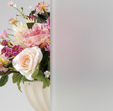 すり板ガラスは、フロート板ガラスの片面を金剛砂で摺ってつやを消し不透明に加工したガラスです。光を拡散しますが、すり面が汚れやすく、水にぬれると透明度が増してしまいます。
